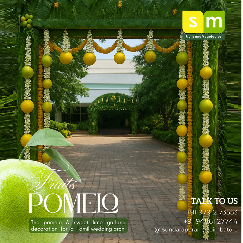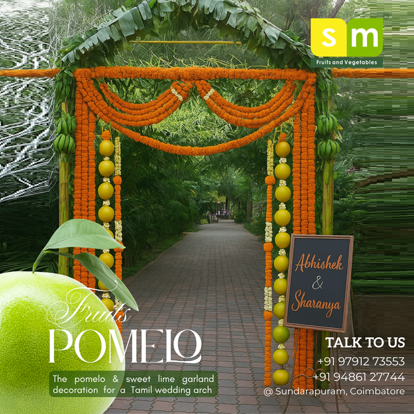 Widely used in Tamil wedding decorations, these large, round pomelo fruits symbolize prosperity, happiness, and abundance.